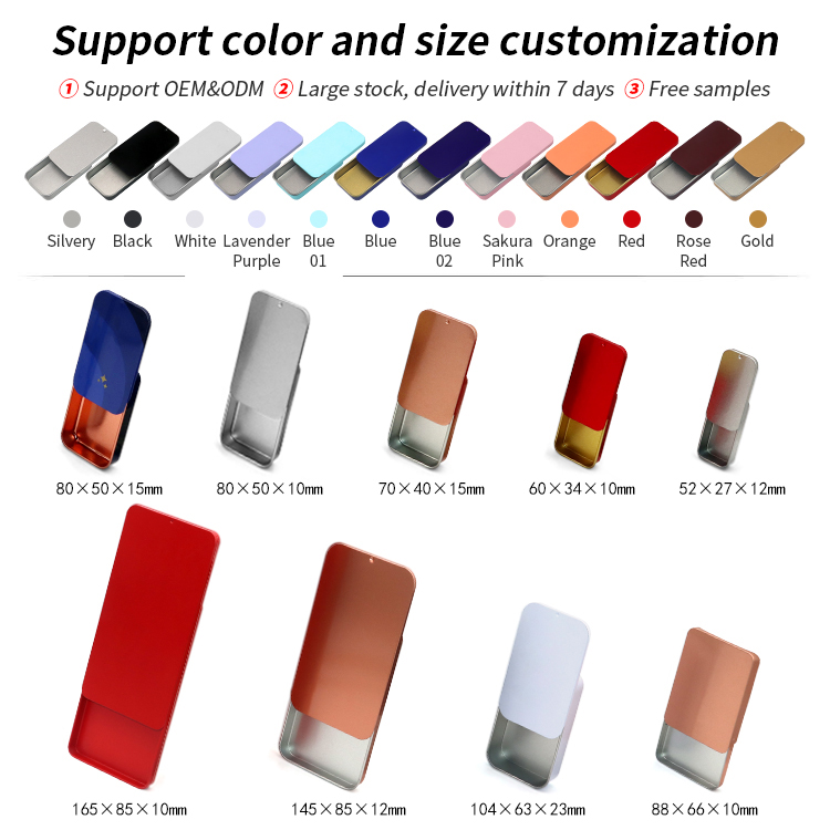 Custom Empty Flat Slide Tin Containers Solid Cologne Cosmetics Candy Metal Tins Box Sliding Lid Tin Case Sale for Food