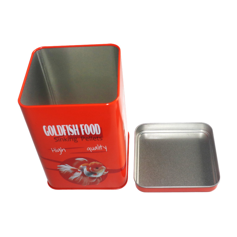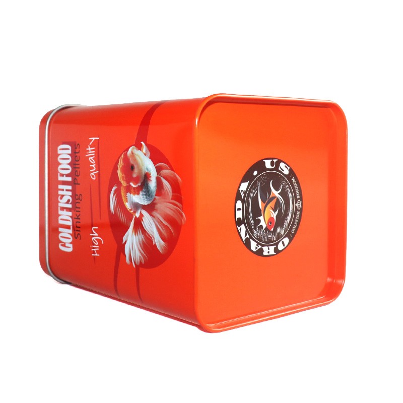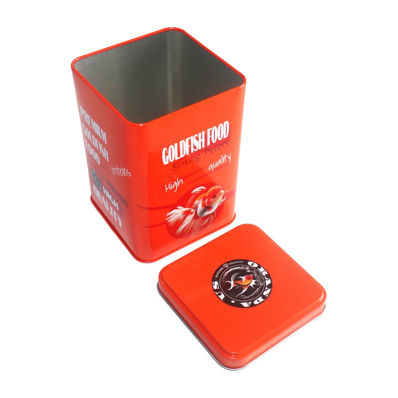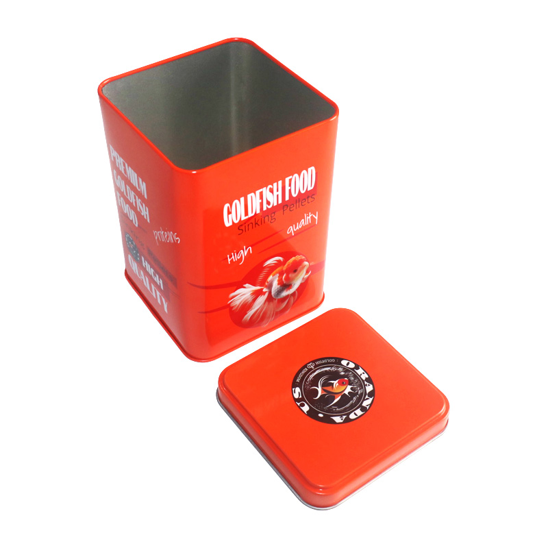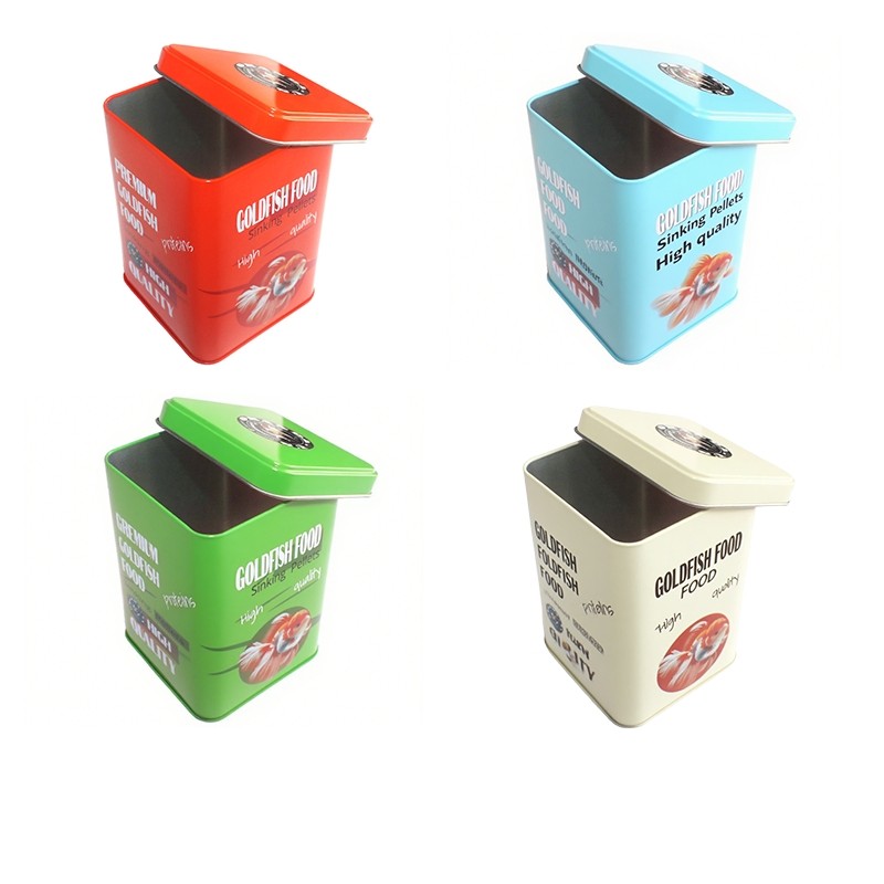 Customized Custom Logo Christmas Goldfish Food Sinking Pellets Tin Box Packaging Food Grade Metal Tin