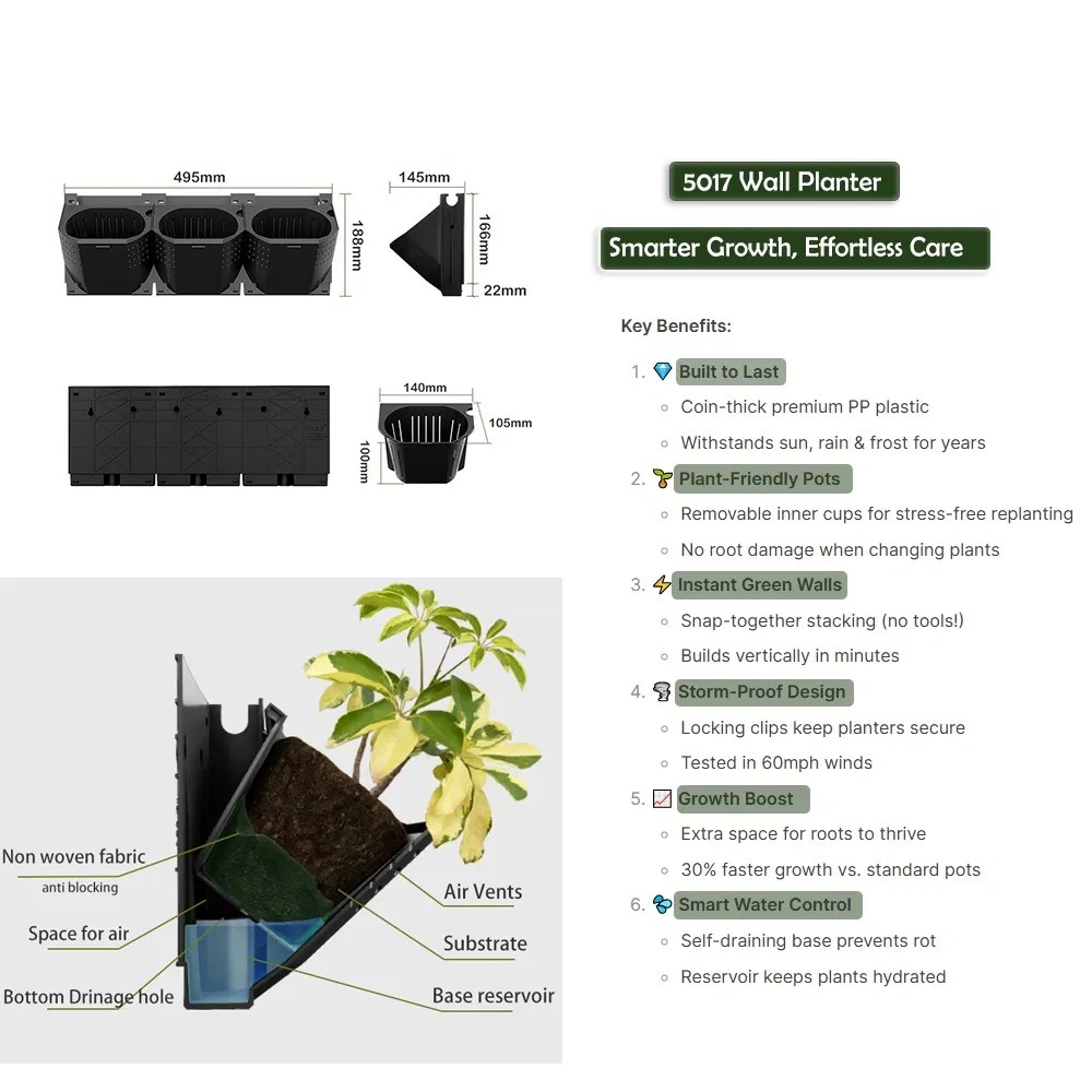 Hith Quality Patent Vertical Garden Wall Self Watering Hydroponics Grow System Flower Modern for Plants Plastic Planter Pots
