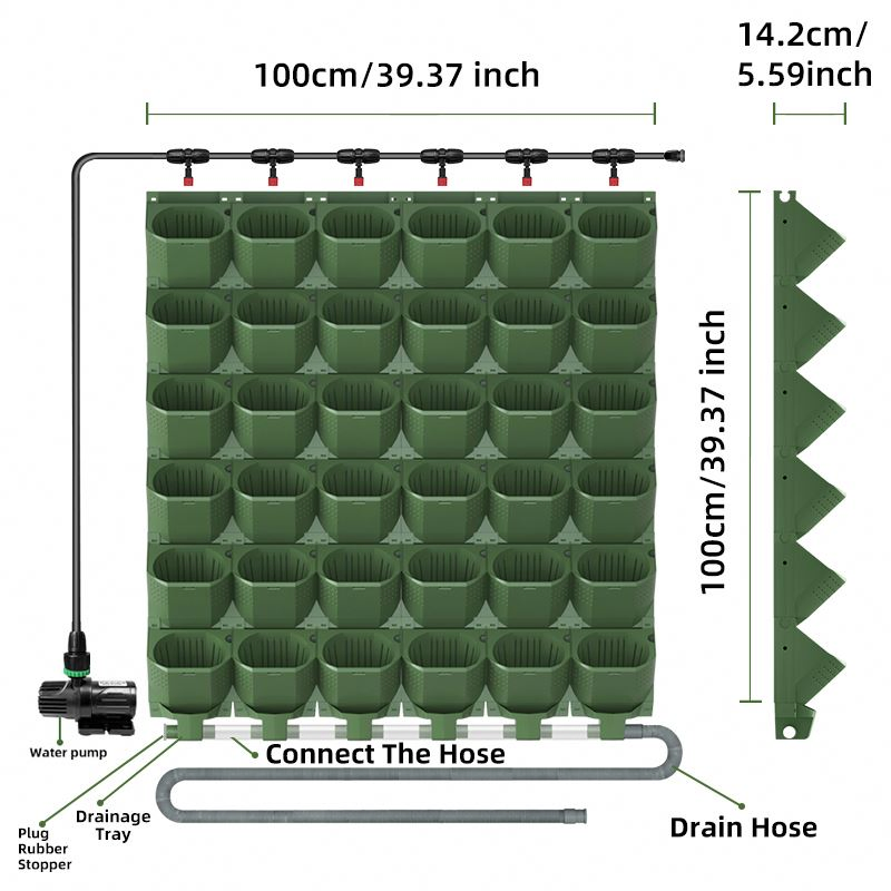 Patent Self-Circulating Hydroponic with Submersible Pump Hanging Plastic Flower Pots on The Vertical Wall Pot