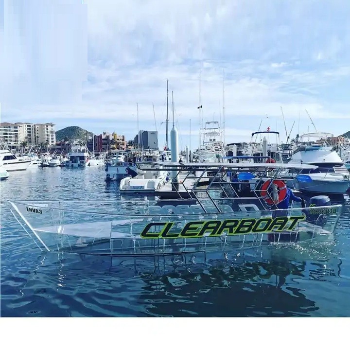 High Quality 100% Clear Boat Transparent Boat Clear Bottom Boat with Engine and Canopy Accommodate 10-15 People