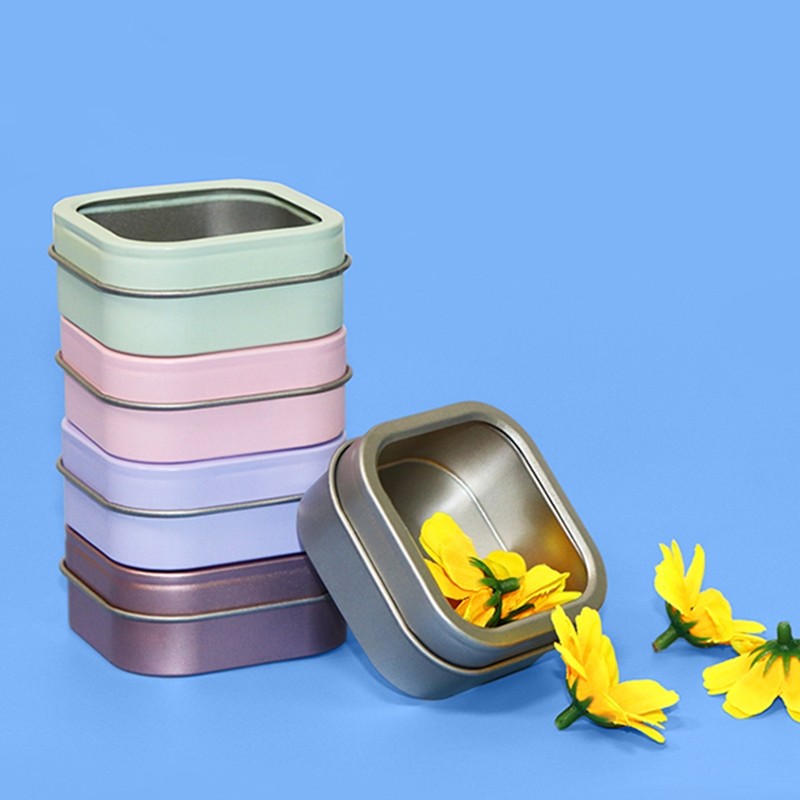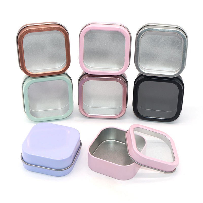 Wholesale Candy Square Tinplate Box Tin Case Custom Window Small Metal Food Customized Logo Durable Candy Container Cans Candy